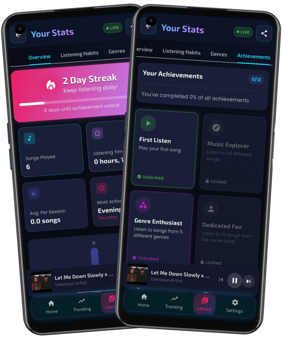 Yes! WavePlay is more than just a music app — it’s fun and interactive. You can unlock achievements based on your listening activity, maintain streaks, and even share your progress with friends. It makes listening to music feel like a rewarding experience.